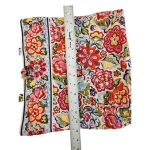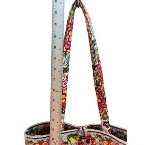 This Vera Bradley tote bag combines style and functionality, showcasing a vibrant floral design. Its quilted fabric offers durability and a soft touch, perfect for daily use. The button closure ensures your belongings stay secure, while the spacious interior accommodates various essentials. Has a couple light stains that can hardly be seen. Smoke free. No holes or tears. Inside has 3 phone size pockets, no outside pockets.