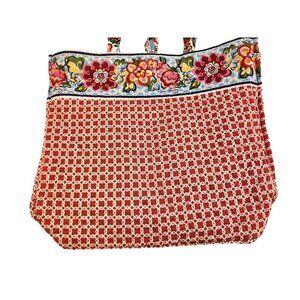 Vera Bradley Quilted Floral Tote Bag With Button Closure
