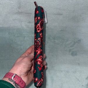Vera Bradley. Elegant quilted design. Vibrant red floral pattern on green. Ideal for organizing essentials.
