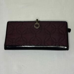 Beautifully coordinated and in like-new condition, this Vera Bradley set includes a quilted foldover crossbody bag and matching wallet. Crafted in rich eggplant purple with patent leather trim and silver hardware, this duo combines everyday functionality with signature Vera Bradley charm.