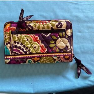 Vera Bradley Quilted Hipster Turnlock Clutch Wallet Plum Crazy Pattern