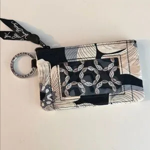 Vera Bradley Quilted ID Wristlet in Black, Cream & Light Gray