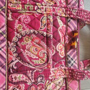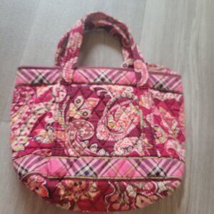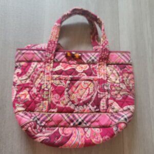 Durable and stylish Vera Bradley tote with matching scarf. Features a vibrant paisley design in pink and red tones. Ideal for everyday use.