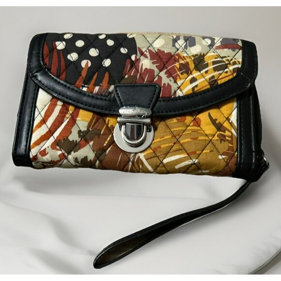 Vera Bradley Quilted Patchwork Wristlet Wallet With Leather Trim & Snap Closure