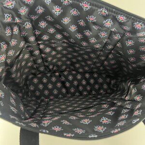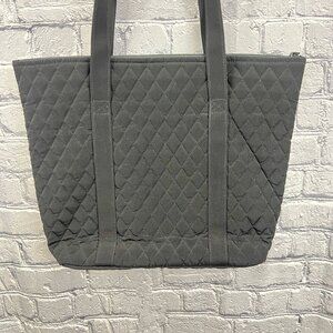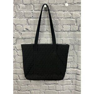 Vera Bradley Quilted Shoulder Tote Bag Black With Zipper Closure & Front Pocket