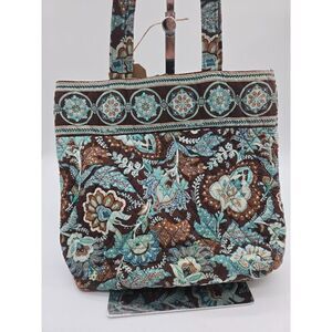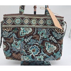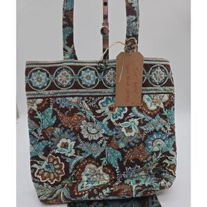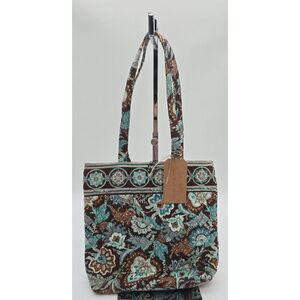 Vera Bradley Quilted Shoulder Tote Bag Brown & Blue Floral