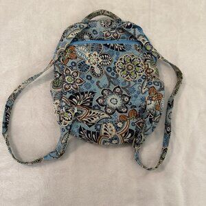 Vera Bradley Quilted Small Backpack Magnetic Front Flap Blue Brown Floral Design