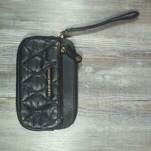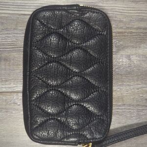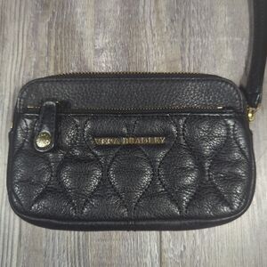 Vera Bradley Quilted Sophie Wristlet Genuine Leather Black W/ Floral Lining