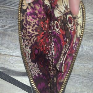 Wristlet measures 7 inches wide, 4 inches tall and 1 inch deep.