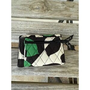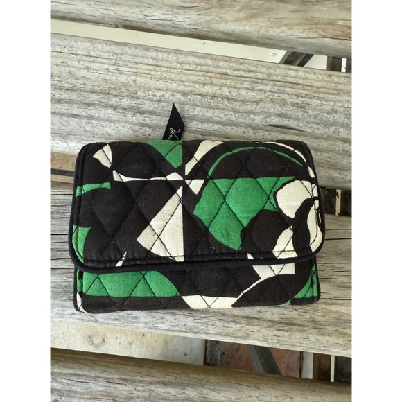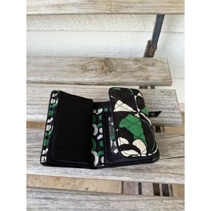 Vera Bradley Quilted Tri Fold Wallet Black Green White Floral Pattern