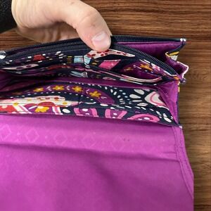 Keywords: Vera Bradley, wallet, clutch, quilted, blue, pink, floral, butterfly, snap closure, card slots, billfold, organizer, accessory, boho, preppy