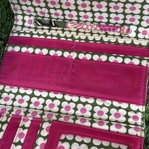 Vera Bradley Quilted Wallet Zip Organizer Green Pink Floral Cotton