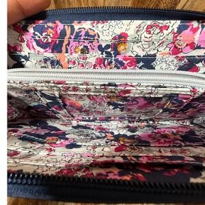 Keywords: Vera Bradley, quilted wallet, zip around, navy wallet, floral interior, travel wallet, card holder, coin purse, designer wallet, organized wallet, everyday wallet