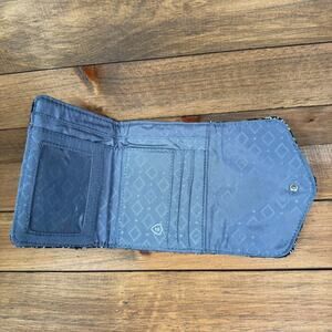 Vera Bradley RFID Mini Tri-Fold Wallet Stellar Paisley Black White Print