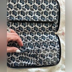 Vera Bradley RFID On the Go Wristlet Bradford Bedford Plaid Performance Twill Floral Gray