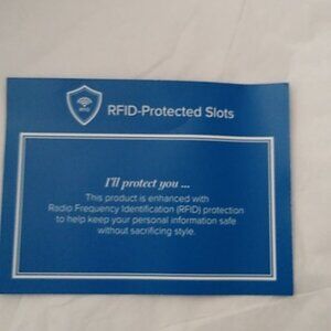 Provides RFID protection for credit and debit cards. Eight credit card slips, ID window and two large bill pockets. Zip coin compartment. Zip closure.