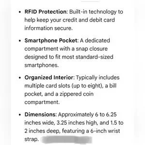 100% Polyester. Imported. MACHINE WASHABLE MICROFIBER -- Made from sleek & lightweight microfiber, these solid colors bring style & function to your everyday life. CARDS, CASH, & COINS -- No matter what type of currency you prefer, the RFID Smartphone Wristlet has you covered, with space for your credit cards, cash, & coins to make your daily commute a little easier. STAY SECURE -- We want to help you protect your information by adding RFID technology so you can have fun & stay fabulous. FIT YOUR PHONE -- Never lose your phone when you keep it safe & secure inside our Smartphone Wristlet, with a perfectly sized pocket for most phones - features 8 card slots with room for cash, coins, & a clear ID window. PERFECTLY SIZED -- The RFID Smartphone Wristlet is perfectly sized for your phone - measuring 6 inches wide, 3 inches high, & 2 inches deep with a 6 inch strap