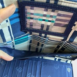 Vera Bradley wallet, RFID wallet, trifold wallet, Santiago print, quilted cotton wallet, Vera Bradley accessories, travel wallet, floral print wallet, secure RFID-blocking wallet, designer trifold wallet, coastal pattern wallet, blue green Vera Bradley, women’s gift idea.