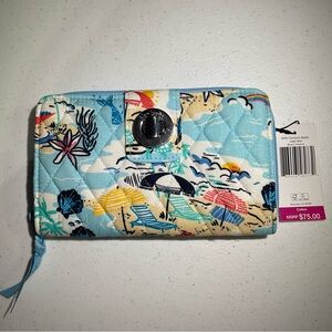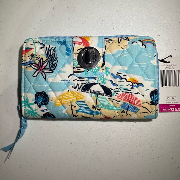 Vera Bradley RFID Turnlock Wallet Beach Pattern Blue Multicolor