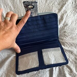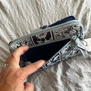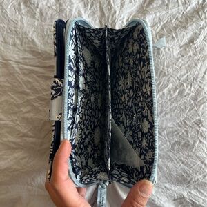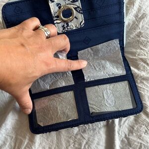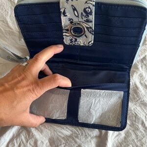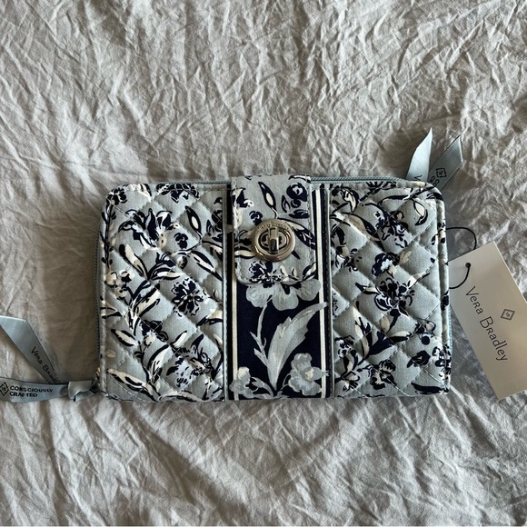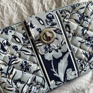 Excellent condition, NWT. Vera Bradley. Charming blue floral quilted wallet. Features a secure turn-lock closure. Exterior zipper pocket. 2 interior ID windows, 6 card slots, slip pockets. Additional zipper compartment with 6 more card slots and storage.