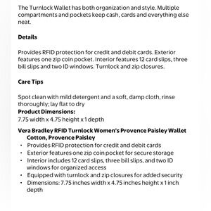Vera Bradley RFID Turnlock Wallet in Provence Paisley