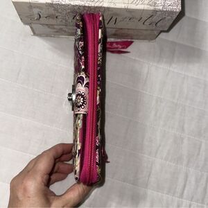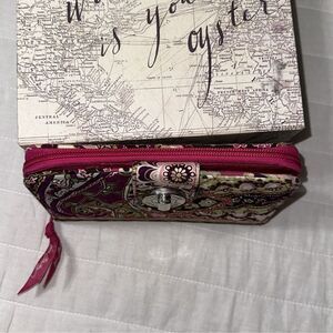 Vera Bradley RFID Very Berry Fuchsia Pink Brown Zip Turn-lock Large Wallet