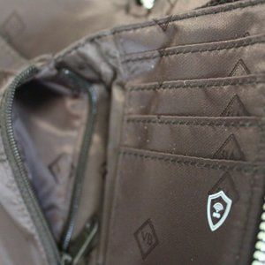 Inside: 1 zip pocket, 1 slip pocket, 1 bill slip, 8 card slots