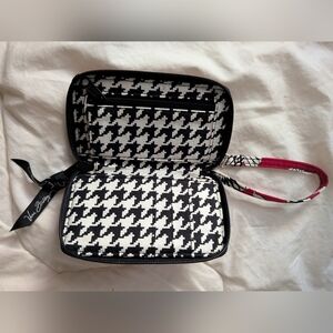 Stylish Vera Bradley red wristlet with floral design. Features a convenient strap. There's a small stain in the corner from storage. This wallet has never been used, however. It's in perfect condition otherwise.