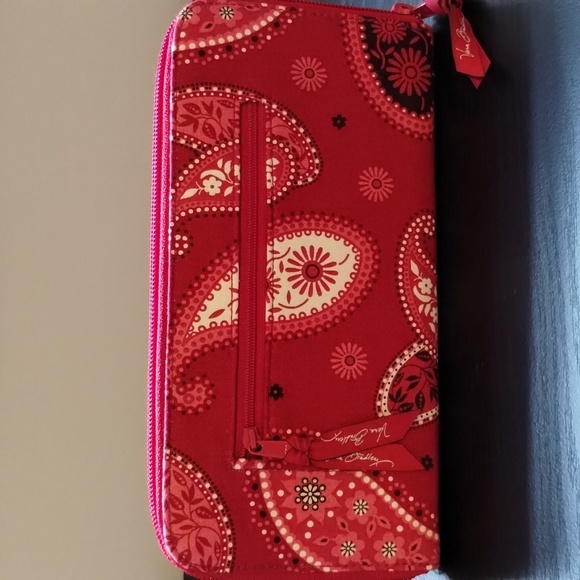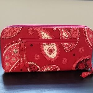 Stylish and vibrant, this Vera Bradley wallet features a striking red paisley design. Perfect for adding a pop of color to your accessories collection.