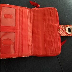 Stylish quilted wallet. Features intricate pattern. Snap closure with logo detail.