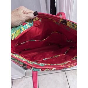 Vera Bradley Red Rumba Floral Small Trimmed Tote Bag 15 X 11 X 5
