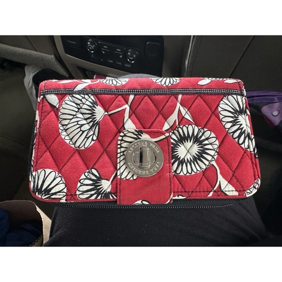 Vera Bradley Red Turn Lock Wallet Deco Daisy 2011 Coin Pocket Card Slots Retired