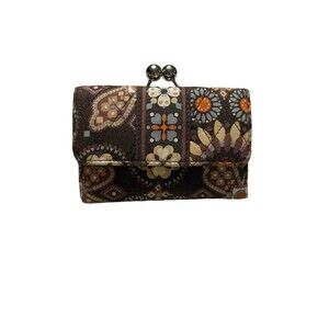 Stylish wallet with vibrant floral design. Features a handy key ring.