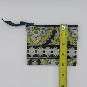The Vera Bradley Retired 2007-2008 Quilted Cambridge Design Vera Bradley Retired 2007-2008 Quilted Cambridge Design Single Pouch Coin WalletSingle Pouch Coin Wallet is a stylish and practical accessory for women. Made of cotton with a floral paisley pattern in green, blue, and black, this wallet features a quilted design and zipper closure. With a bohemian theme and zip-around style, this wallet is both functional and fashionable, perfect for everyday use. The Vera Bradley brand ensures quality and craftsmanship, making this wallet a timeless addition to any woman's accessories collection. Wallet measures 5"×0.5"×4".