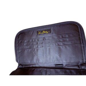 The Vera Bradley Retired Black & Yellow Bird Zip Wallet is a stylish accessory for women featuring a bird pattern and quilted accents. Made of cotton microfiber, this wallet has a zip-around style with credit card slots. The black color and bird theme add a charming touch to any outfit, making it a practical and fashionable choice for everyday use. Made by the well-known brand Vera Bradley, this wallet is a high-quality and unique addition to any wardrobe.