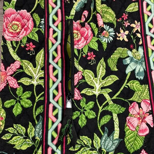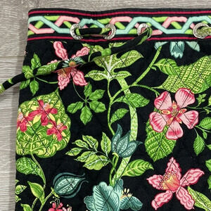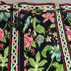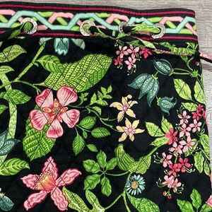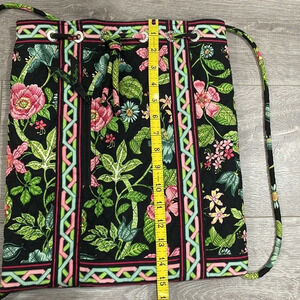 Vera Bradley Botanica Backsack. Retired Vera Bradley Botanica Backsack. Excellent preowned condition. Multicolored floral pattern in shades of green, pink, and yellow on a black background. Fully lined with kiwi green fabric printed with a blue geometric pattern. Self-corded drawstring closure with an overall flat measurement of 13”x15”. Cording passes through silver tone Vera Bradley riveting. Exterior zippered pocket and 3 large interior slip pockets. Please see photos for approximate measurements and details. Item may show difference in color based upon photography and perception. Photos are part of the description, as everyone’s level of condition may vary. From smoke free and pet free home. All packages are shipped the same or next business day.