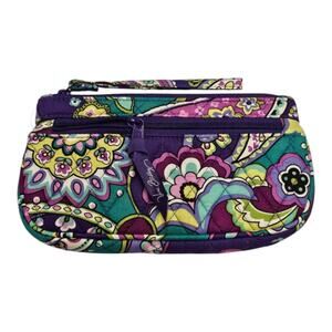 The matching wallet is in excellent condition, maybe used once, if ever. one outside zipper compartment. Upper zipper closure. 3 inside card holder.