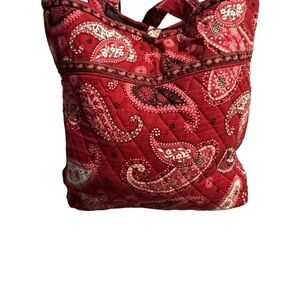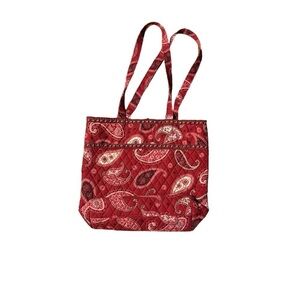 Vera Bradley Retired Mesa Red Tote Paisley Pocket Button Close Beach Career Work