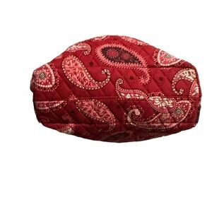 The Vera Bradley Retired Mesa Red Tote is a medium-sized, square-shaped bag made of quilted cotton fabric with a paisley pattern. It features a button closure, double handles with a red cotton strap accent, and pockets for storage. The tote also includes a matching pouch accessory. The bag is suitable for travel, casual, workwear, and business occasions, and has a vintage theme. The lining is made of red cotton, and the hardware material is acrylic. The product line is Vera Bradley Mesa, and the model is Andrea
