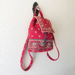 Vera Bradley Retired Provincial Red Mimi Quilted Drawstring Backpack 100% Cotton