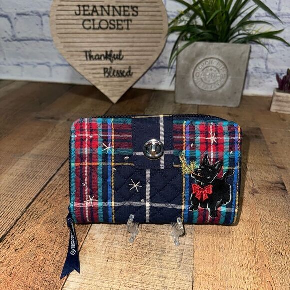 Vera Bradley Retired Scottie Dog Tartan Plaid RFD Turnlock Wallet