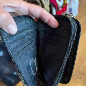 Four sections for cash and credit cards.