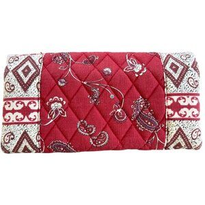 This retired Vera Bradley checkbook wallet features a classic red and creme paisley pattern, perfect for vintage enthusiasts. Ideal for organizing your essentials with style.