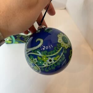 Vera Bradley Rhythm & Blues Print Hand Painted Glass Ornament Christmas 2011