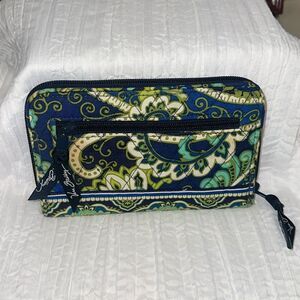 Vera Bradley Rhythm Blues Navy Green White Zip Turn-lock Large Wallet