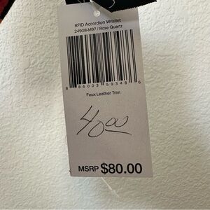 Vera Bradley Accordion Wristlet. Rose Quartz. Cloth with faux leather trim. RFID protection to help keep your information safe. New with tags.