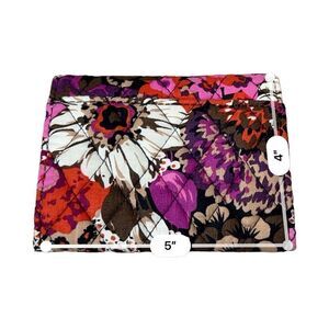 Vera Bradley Rosewood Floral Print Euro Tri-fold Wallet Quilted Bohemian 70s. Features 4 credit card slips, slip pouch, ID slip, zippered pouch and outer slip pocket. Snap closure. Fabric shows no signs of wear. Item in excellent gently used condition. No known rips, tears, holes, stains or defects. 5" x 4"