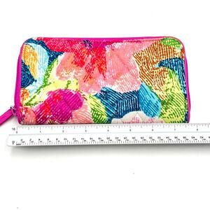 Vera Bradley SUPER-BLOOM RFID Abstract Floral zip around fabric Wallet