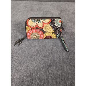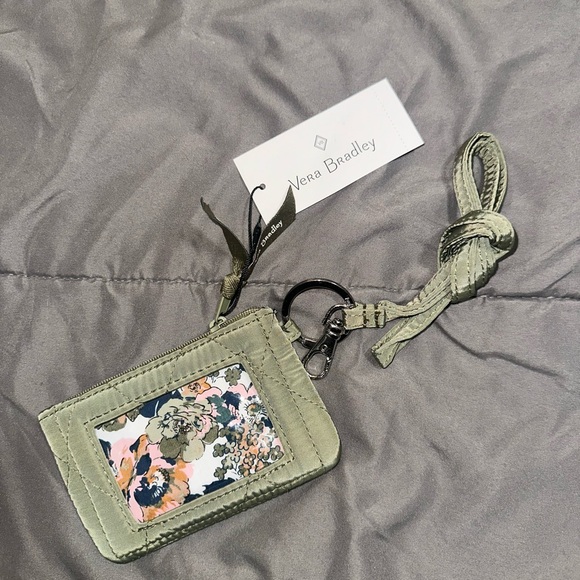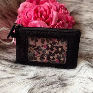 Vera Bradley ID holder with floral design. Features a keyring and strap. Stylish and functional.
