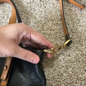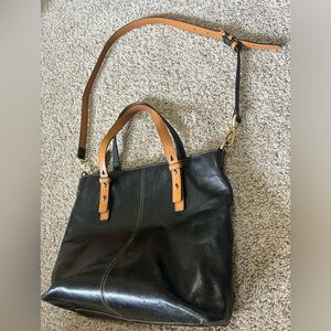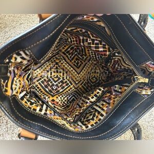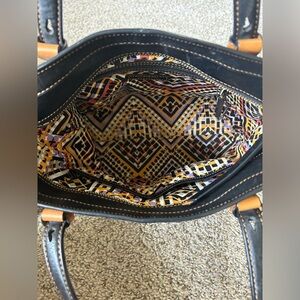 Vera Bradley Sagebrush Satchel Black Tan Leather Tote Bag Stitching Aztec Lined